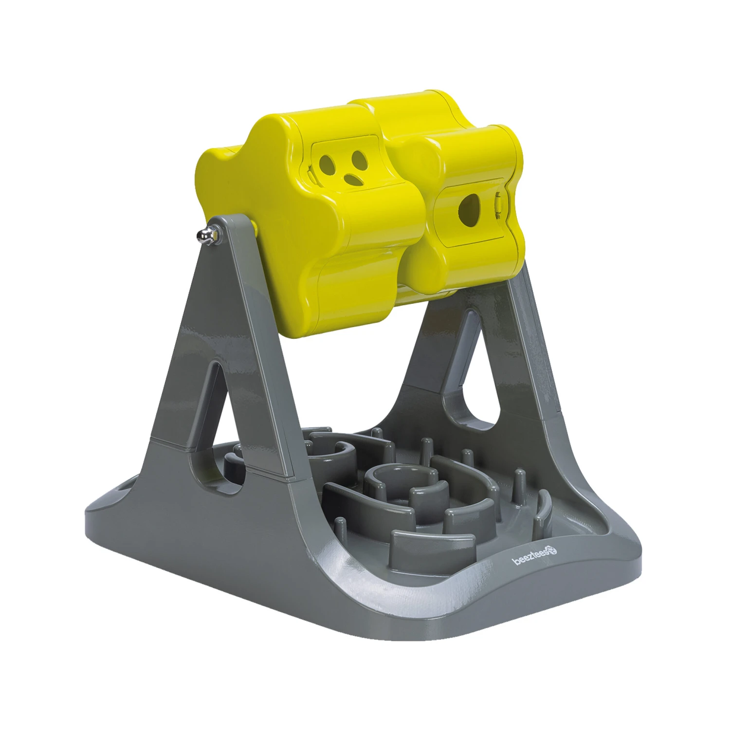 Machen Sie Ihrem Hund eine Freude mit diesem lustigen Denkspiel, dem Beeztees Brain Game Rodar. Das Spiel besteht aus Kunststoff und hat zwei Rollen, in die Sie Hundeleckerlis stecken können. Wenn Ihr Hund sie mit seiner Pfote oder seiner Nase dreht, können die Leckerlis aus den Rollen herausfallen. Das Beeztees Brain Game Rodar wird mit 3 verschiedenen Ventilen geliefert. So können Sie den Schwierigkeitsgrad zwischen einem, zwei oder drei Löchern wählen. Wenn das Leckerli herausfällt, landet es im Anti-Kau-Boden. Auch hier hat Ihr Hund die Aufgabe, das Leckerli zwischen den Steigern zu schnappen. Das Spiel hilft bei der geistigen Anregung und gegen Langeweile.