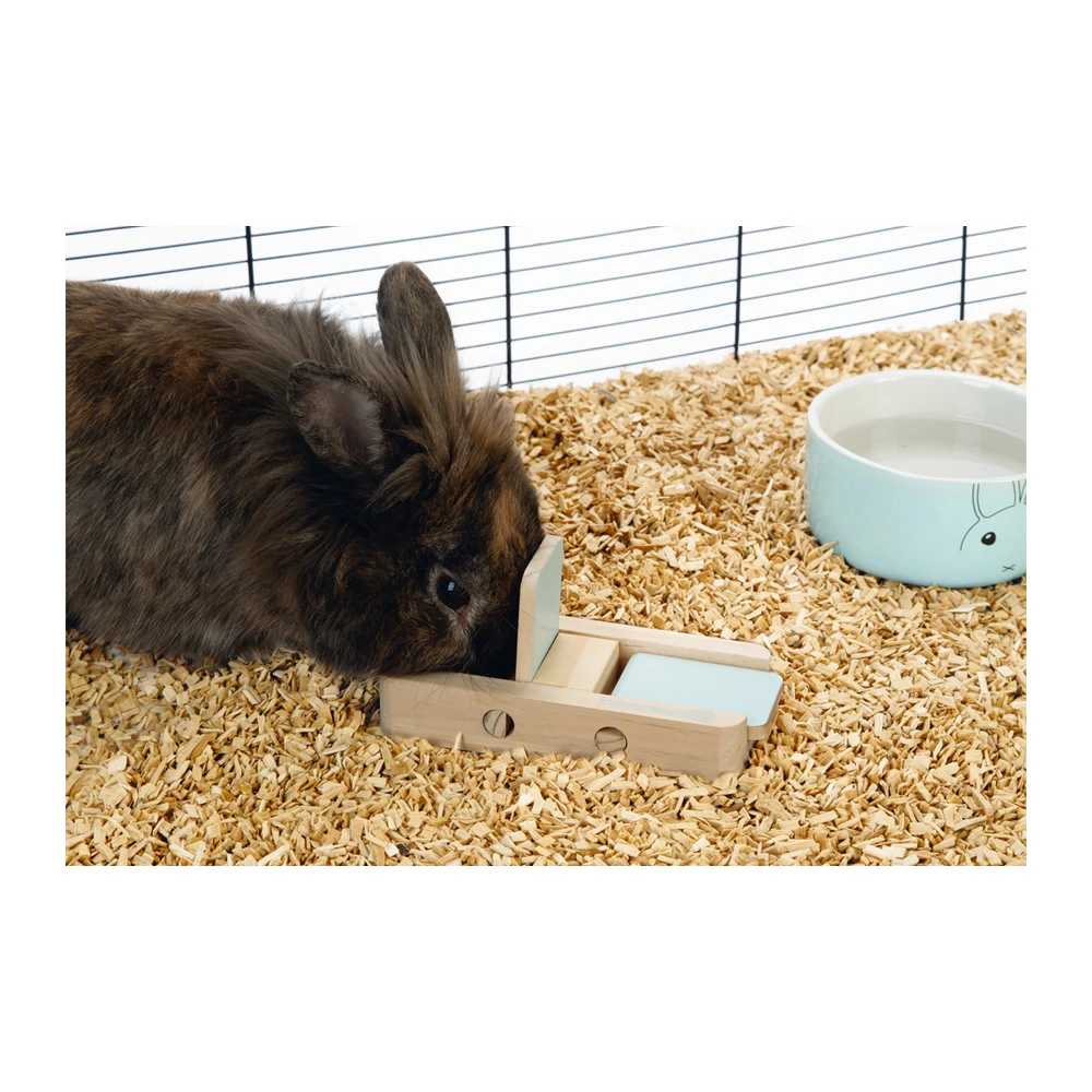 Fordern Sie Ihr Kaninchen oder Nagetier mit diesem lustigen Denkspiel von Beeztees heraus. Das natürliche Verhalten wird durch die Suche nach etwas Leckerem stimuliert. Verstecken Sie den Lieblingssnack Ihres Haustiers unter den 2 minzgrünen Deckeln. Die Absicht ist, dass Ihr Haustier klug genug ist, um mit seiner Schnauze die Deckel hochzuschwingen, um das Leckerli zu finden. Mit diesem lustigen Intelligenzspiel wird sich Ihr Haustier nicht so leicht langweilen!