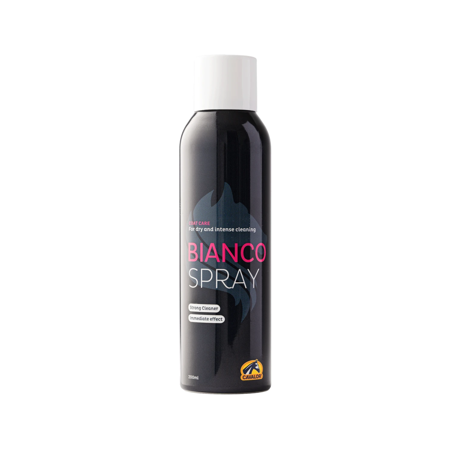 Sie benötigen lediglich das Cavalor Bianco Spray und ein sauberes (Handtuch-)Tuch. Es wird nicht einmal Wasser benötigt, was es ideal für die Reinigung Ihres Pferdes im Winter macht. Wenn Sie Cavalor Bianco Spray auf den schmutzigen Fleck sprühen, wird das weiße Pulver aktiviert. Das Spray enthält verschiedene hochwertige Silikone. Dieses Silikon sorgt dafür, dass Schmutz nicht mehr am Fell haften kann.