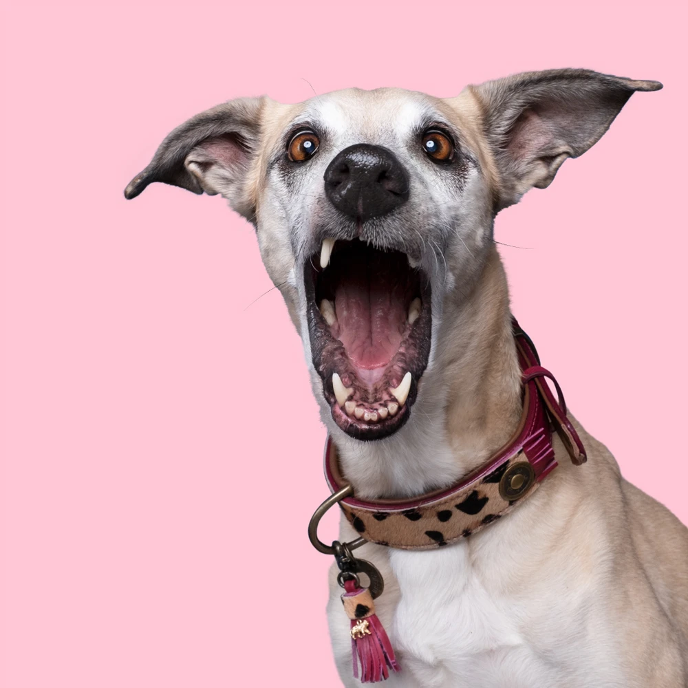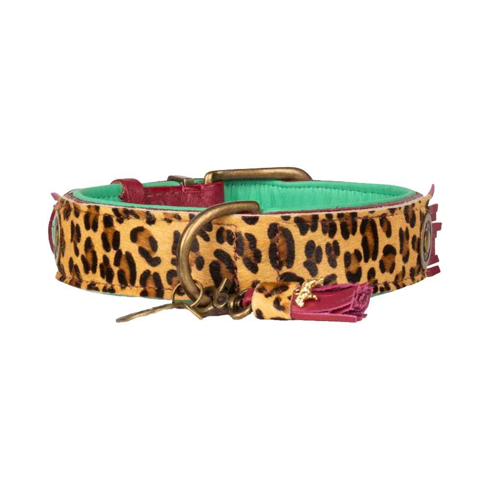 Suchen Sie ein hochwertiges und stilvolles Halsband für Ihren Hund? Dann ist das Dog with a Mission Hundehalsband Lou Lou die richtige Wahl. Das Halsband ist aus weichem bordeauxfarbenem Leder in Kombination mit Ziegenhaar mit Tigerprint gefertigt. Da es handgefertigt ist, ist jedes Halsband ein Unika.! Das Halsband ist für große und kleine Hunde erhältlich.