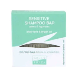 Greenfields Sensitive Shampoo Bar wurde speziell für alle Hundebesitzer entwickelt, die bewusster mit ihrem Konsum umgehen wollen. So wie die Menschen sich zunehmend für Shampoobars entscheiden, gibt es diese auch für Ihren vierbeinigen Freund. Das Greenfields Sensitive Shampoo Bar wurde auf natürlicher Basis entwickelt. Der Zusatz von Arganöl und Aloe Vera verleiht Ihrem Hund einen angenehmen Duft und reizt die empfindliche Haut nicht. Das Shampoo ist pH-neutral und frei von allen unerwünschten Inhaltsstoffen, einschließlich SLS, Parfüm, Farbstoffen und Parabenen. Ein großer Vorteil einer Shampoobar ist, dass sie den Verbrauch von Plastik drastisch reduziert. Mit einem Shampoobar von Greenfields sparen Sie sogar drei Shampooflaschen aus Plastik. Es ist also nicht nur nachhaltiger für die Umwelt, sondern auch für Ihren Geldbeutel. Das Fell Ihres Hundes lässt sich nach der Verwendung des Sensitive Shampoo Bar leicht durchkämmen.