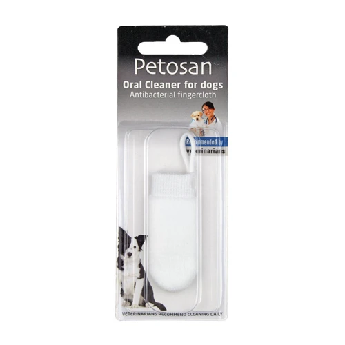 Das Petosan Zahntuch/die Fingerbürste ist für die einfache Reinigung der Zähne und Maulhöhle. Das Zahntuch ist anti-mikrobiell und daher ein selbstreinigendes Mikrofaser-Zahntuch. Die Fingerbürste passt leicht um den Finger. Das Putzen hilft bei der Entfernung von Zahnbelag und Bakterien in dem Maul. Verwenden Sie das Zahntuch in der ersten Woche täglich. Anschließend können Sie diesen Pflegevorgang ein- bis zweimal pro Woche beibehalten. Vor der Anwendung befeuchten; nach dem Gebrauch ausspülen und trocknen lassen.