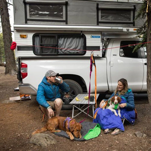Ruffwear Knot-a-Hitch ist ein innovatives Befestigungssystem für den Hund beim Campen. Mit der Hilfe von diesem System kann Ihr Hund problemlos an dem Lagerplatz herumlaufen, während er sicher an einem starken Kernmantelseil angeleint ist. Dieses Bergsteigerseil befestigen Sie zwischen zwei Bäumen und anschließend sorgen Sie dafür, dass die Hundeleine in den Karabinerhaken von diesem gespannten Seil eingehängt und befestigt wird. Dieser Karabinerhaken kann sich frei über die Spannweite von dem Seil zwischen den zwei Bäumen bewegen. Schauen Sie sich das unten stehende Video an, um zu sehen, wie Sie das Ruffwear Knot-a-Hitch zusammensetzen und aufbauen können.
