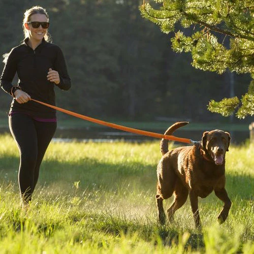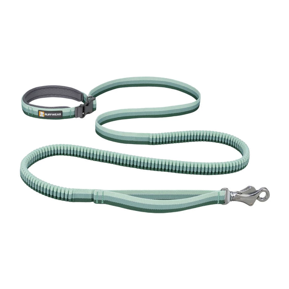 Die Ruffwear Roamer Leash ist eine flexible Hundeleine mit elastischem Kern. Da sich die Leine bei starker Belastung dehnt, fängt sie Stöße gut auf. Die Leine kann sowohl in der Hand gehalten als auch um die Taille gebunden werden. Aus diesen Gründen eignet sich diese Hundeleine besonders gut für Jogger, die gemeinsam mit ihrem Hund laufen. Mittels praktischem Talon-Clip lässt sich die Leine mit nur einer Hand einfach am Halsband befestigen und wieder öffnen. Der Clip ist außerdem sehr robust und sicher. Damit die Handschlaufe bequem in der Hand liegt, ist diese gepolstert. Dieser Griff ist außerdem mit einer Schlaufe ausgestattet, an der Sie Kotbeutel oder andere Accessoires mit Clipverschluss befestigen können.