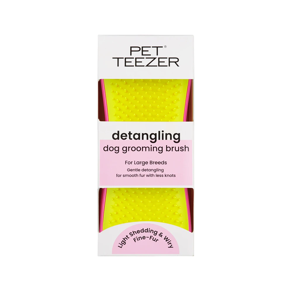 Mit der Detangling-Bürste von Pet Teezer entwirren Sie das Fell Ihres Hundes im Handumdrehen. Mit dieser Bürste brauchen Sie nur sanft zu bürsten, ohne zu stark zu ziehen. Dadurch ist die Bürste auch für feinstes Haar geeignet. Mit unterschiedlichen Borsten. Die langen entfernen den Schmutz aus der Unterwolle und die kleineren Stifte glätten das Fell wunderbar. Deshalb ist die Bürste auch für Hunde mit dickem Fell geeignet.