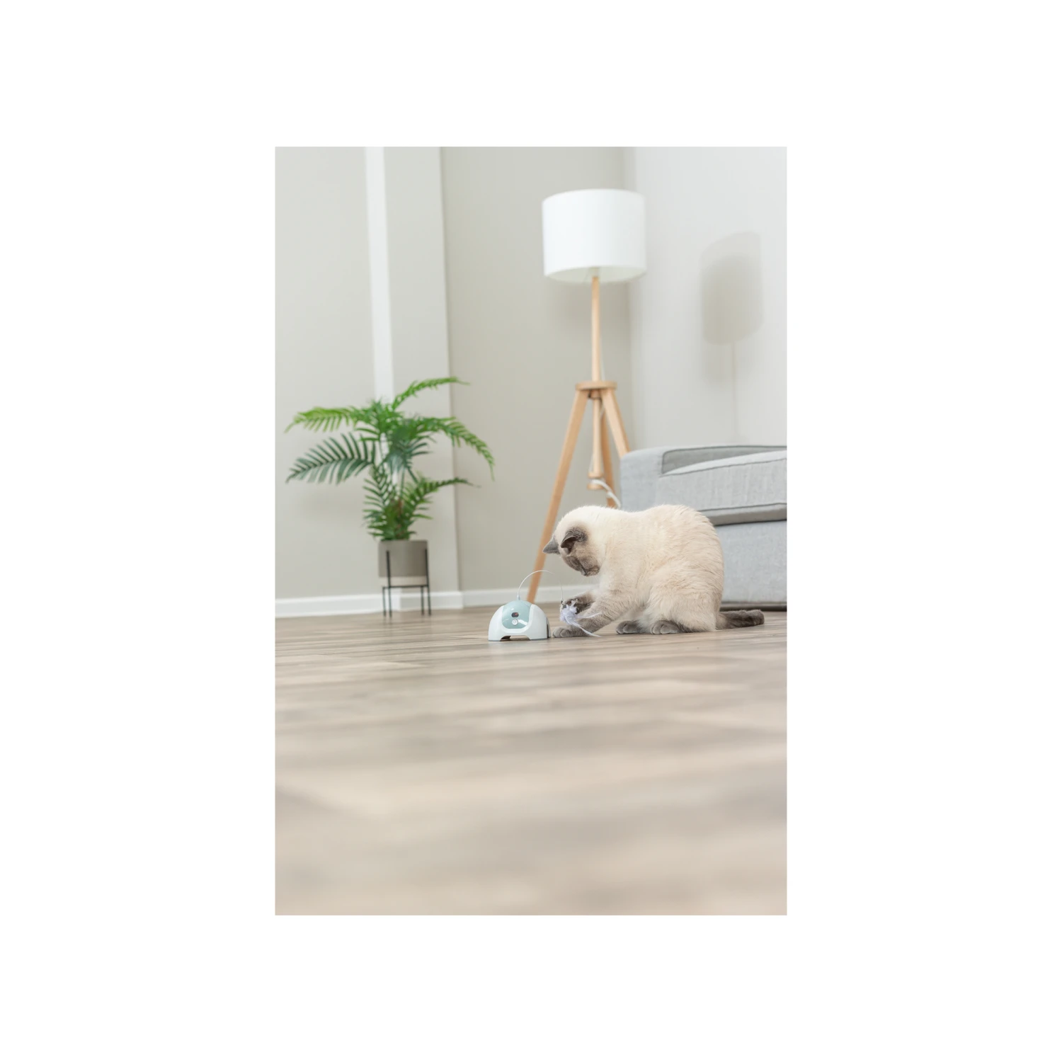 Das Trixie Catch Me ist ein elektronisches Katzenspielzeug, das Ihre Katze mit unerwarteten Bewegungen herausfordert. Ein eingebauter Motor lässt die Spielangel wild herumschwingen, was ein spannendes und dynamisches Spiel garantiert. Ideal, um den Jagdinstinkt Ihrer Katze zu fördern und Langeweile zu vermeiden. Das Spielzeug ist aus robustem Kunststoff gefertigt und funktioniert mit Batterien. Praktisch: Es wird eine Ersatzspielangel mitgeliefert, sodass Sie immer bereit für die nächste Spielsession sind. Perfekt für Katzen, die ein aktives Spiel lieben!