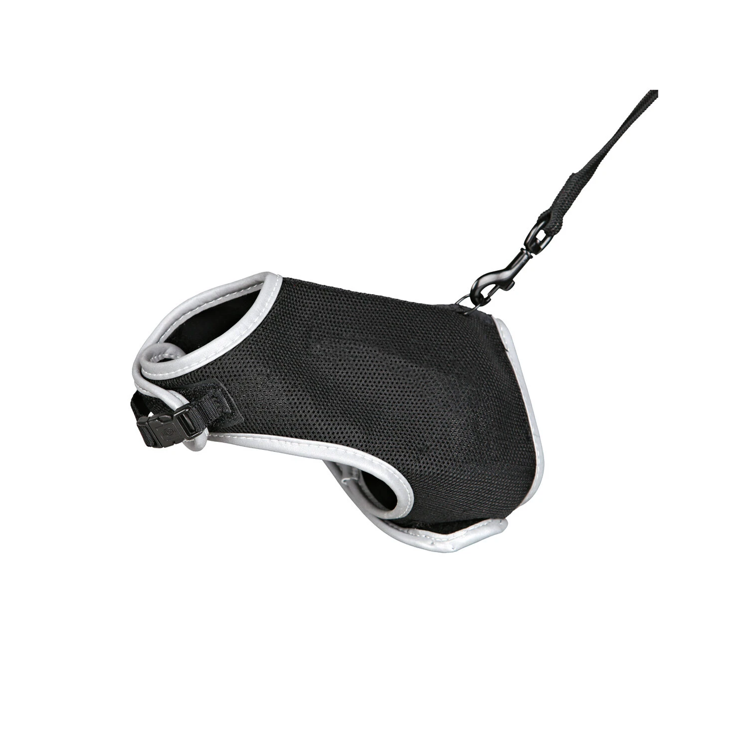 Komfortables Katzengeschirr mit passender Leine. Das Geschirr ist weich gefüttert und atmungsaktiv. Somit wird es Ihrer Katze nicht so schnell warm. Es lässt sich gut an den Körperbau Ihrer Katze anpassen, denn das Geschirr kann verstellt werden. Dank der reflektierenden Streifen ist Ihre Katze auch gut im Dunkeln zu sehen und besonders praktisch ist es auch noch, denn ist das Geschirr schmutzig geworden, können Sie es einfach bei 30 °C in der Waschmaschine waschen.