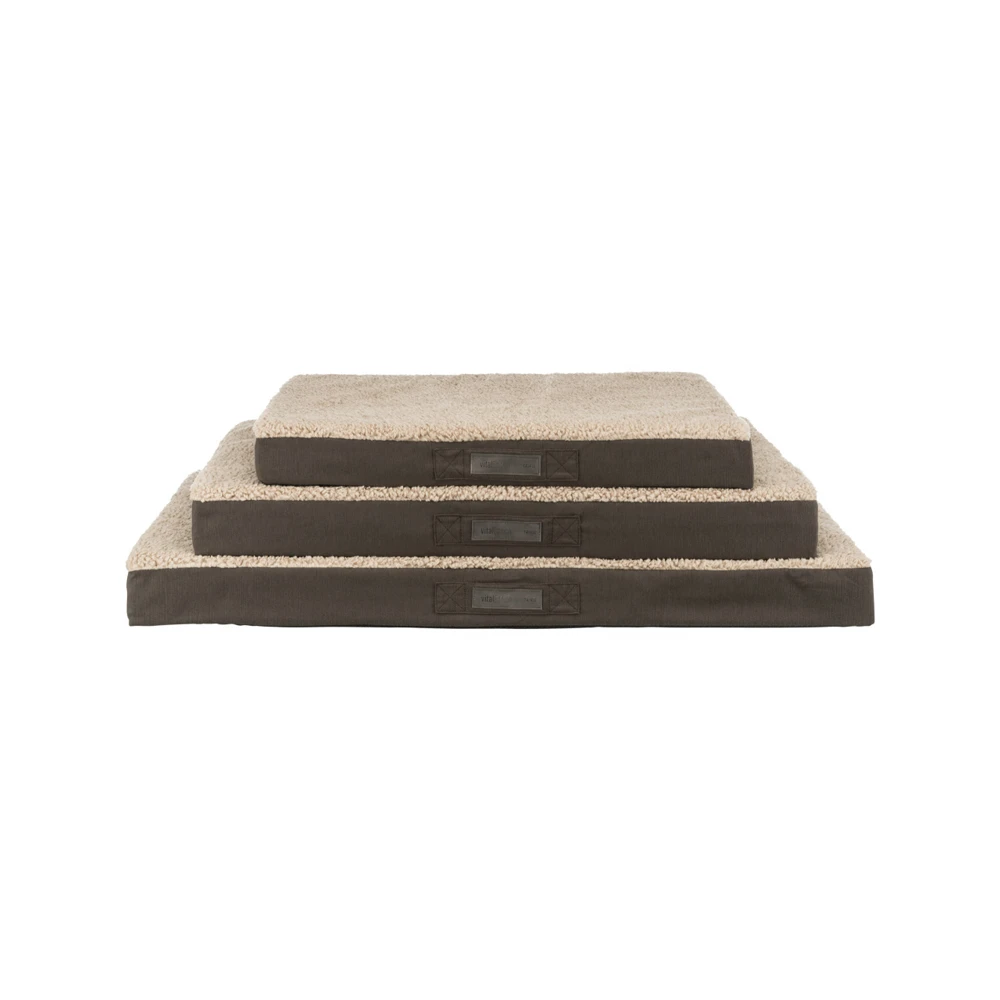 Die Trixie Bendson ist eine orthopädische Matratze, für optimalen Schlafkomfort Ihres Hundes. Das Kissen ist aus einem plüschigen/gerippten Stoff gefertigt und hat einen weichen Polyesterbezug. Die Matratze besteht aus insgesamt zwei Schichten: einer Komfortschaumschicht und einer 8 bis 10 Zentimeter dicken viskoelastischen Schaumschicht mit so genanntem „Memory Foam“-Effekt. Der Bezug ist außerdem abnehmbar und bei 30 Grad Celsius in der Maschine waschbar. Ein rutschfester Boden sorgt dafür, dass die Matratze an ihrem Platz bleibt, und bietet zusätzliche Stabilität. Eine gute Wahl für Hunde jeden Alters, aber besonders für ältere Hunde kann diese Matratze eine echte Bereicherung sein. Die Matratze trägt auch ein österreichisches Tierschutzlabel.